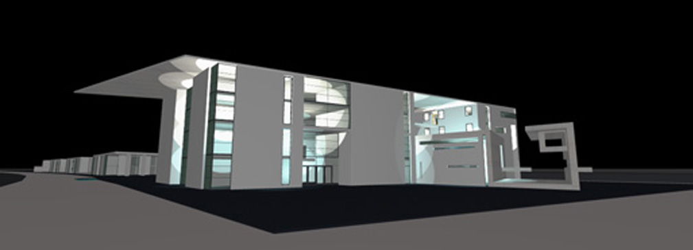 Sichtbetonelementes durch die gesamte Anlage als verbindendes